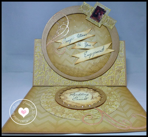 The Eagle Eyed amongst you will have noticed in my blurry side view pic that the back panel in sitting up nice and straight with no apparent support. It is, in fact, well supported with a nifty picture frame type stand that I fashioned out of a spare piece of card. I even cut out the wee fold down notch to keep the leg sticking out!